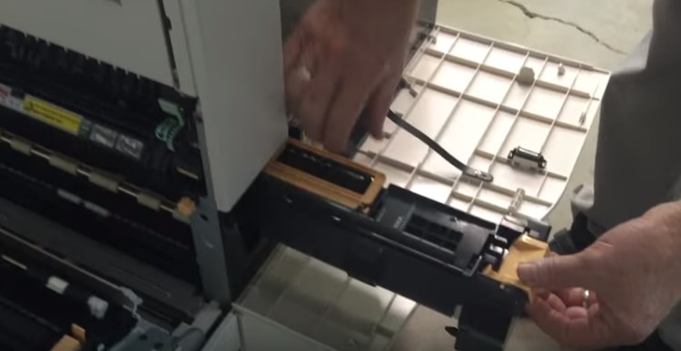 4.-Cambie el cartucho de cilindro o unidad de imagen desprendiendo todas las cintas y pagables.